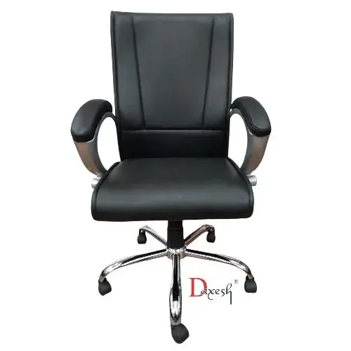 Experience unmatched comfort and support with the DF-1009 MB Chair. Cushioned Handle Designed for both comfort and professionalism, this chair features plush, durable leatherette upholstery that offers the sophisticated look and feel of genuine leather without the maintenance. The medium back provides excellent lumbar support, promoting good posture  and reducing fatigue during long working hours.