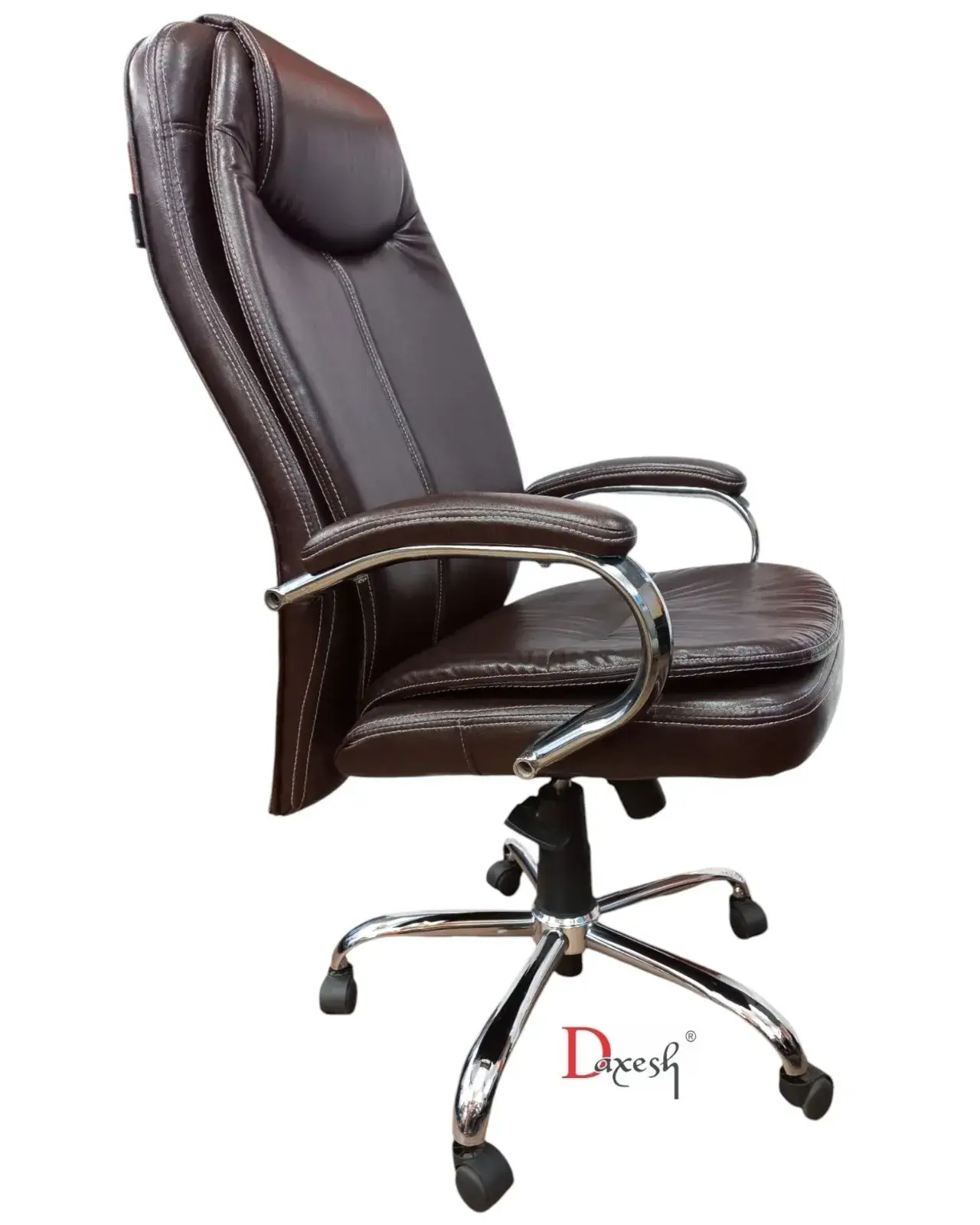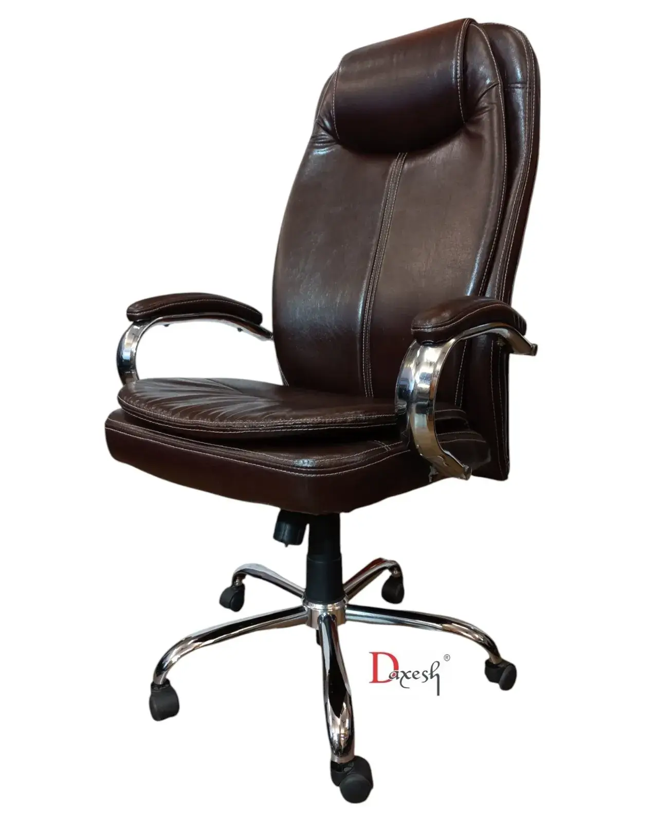 Sink into Serenity : Double Cushioned leatherette office chair in Rich Brown. Designed for ultimate comfort and sophisticated style, upholstered in a warm, rich brown leatherette, this chair brings a touch of classic elegance to any office or home study.